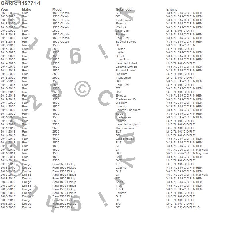 1500, 1500 Classic, 2500, Ram 1500, Ram 2500, Dodge, Ram, 2020, 2019, 2018, 2017, 2016, 2015, 2014, 2013, 2012, 2011, 2010, 2009