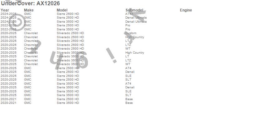 Below is an abbreviated list of applications for the Armor Flex Tonneau Cover.