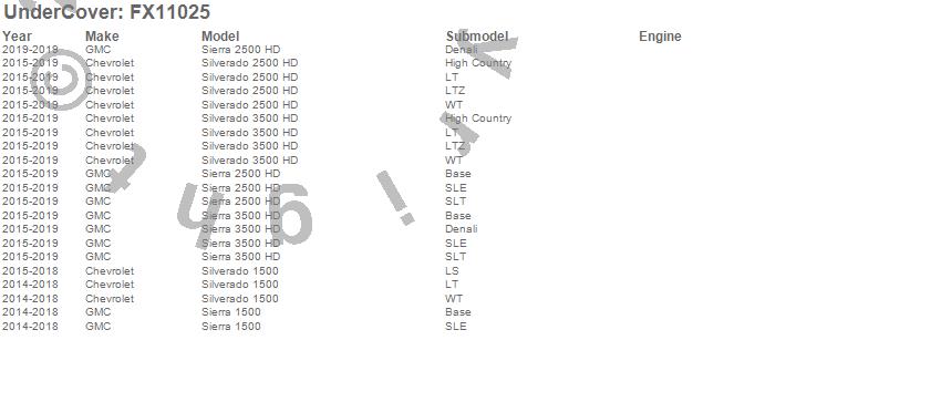 Below is an abbreviated list of applications for the FLEX Tonneau Cover.