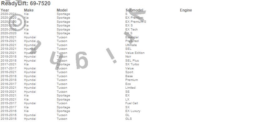 Below is an abbreviated list of applications for the SST Lift Kit.