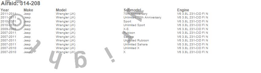 Below is an abbreviated list of applications for the Performance Air Intake System.