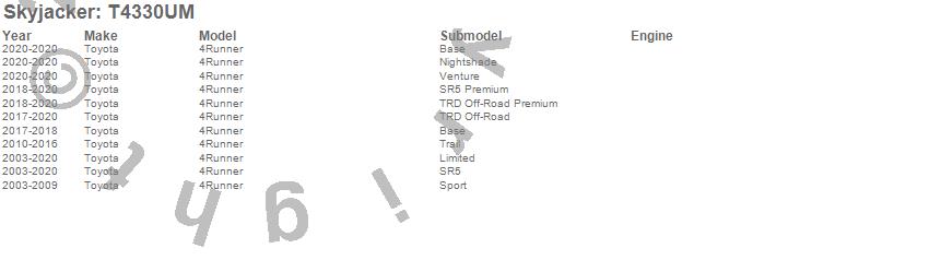 4Runner, Toyota, 2020, 2019, 2018, 2017, 2016, 2015, 2014, 2013, 2012, 2011, 2010, 2009, 2008, 2007, 2006, 2005, 2004, 2003