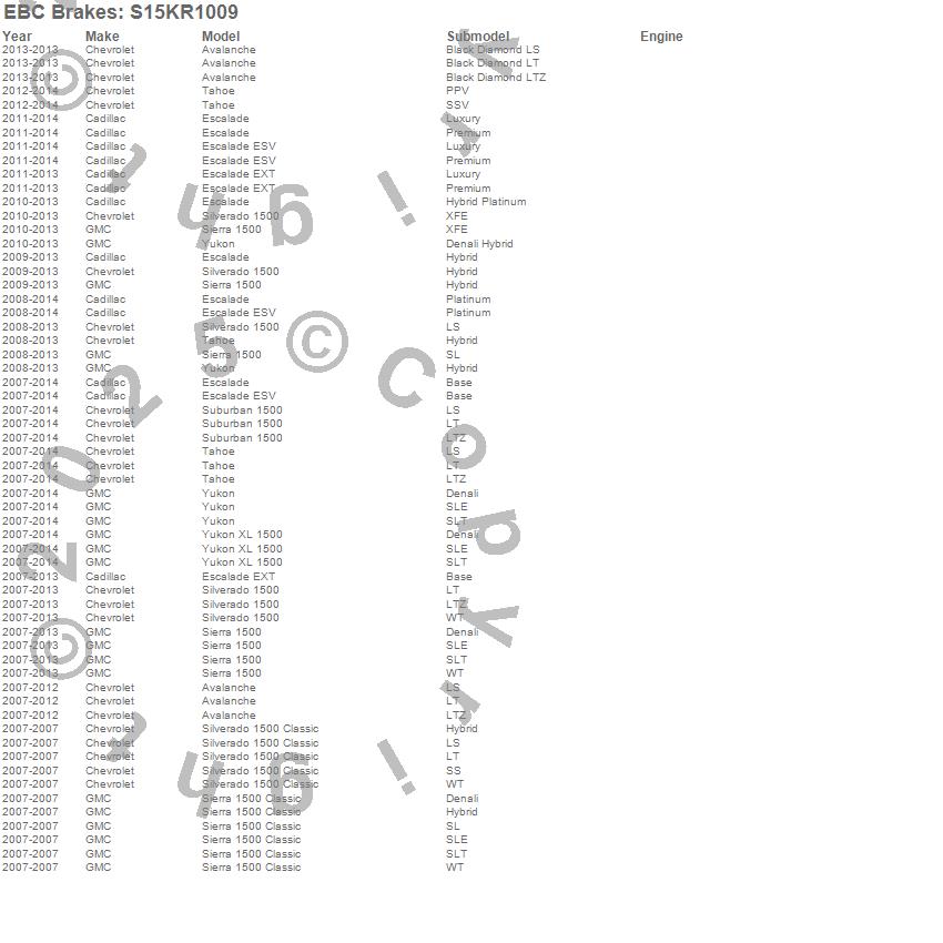 Below is an abbreviated list of applications for the S15 Kit Extra Duty and USR Rotors.
