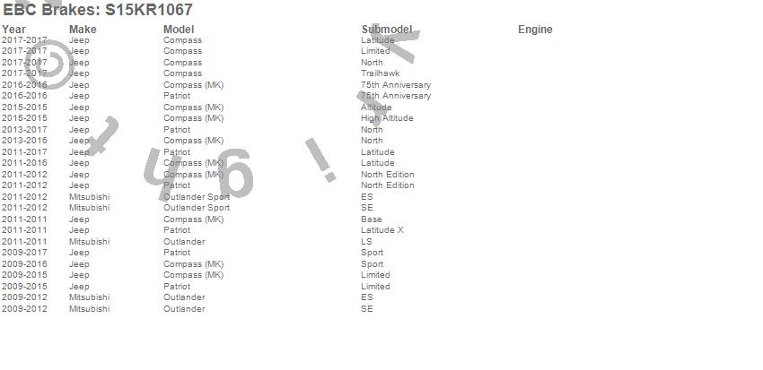Below is an abbreviated list of applications for the S15 Kit Extra Duty and USR Rotors.
