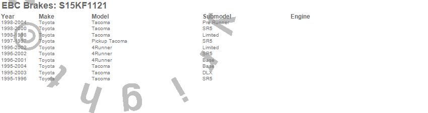 Below is an abbreviated list of applications for the S15 Kit Extra Duty and USR Rotors.