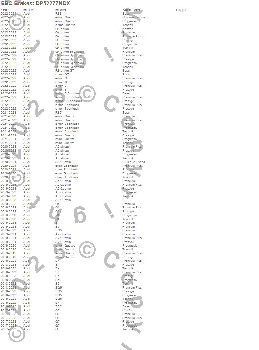 A6 allroad, A6 Quattro, A7 Quattro, A8 Quattro, e-tron GT, e-tron Quattro, e-tron S, e-tron S Sportback, e-tron Sportback, etron Quattro, etron Sportback, Q4 e-tron, Q4 e-tron Sportback, Q7, Q8, RS e-tron GT, RS3, RS5, S4, S5