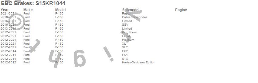 Below is an abbreviated list of applications for the S15 Kit Extra Duty and USR Rotors.