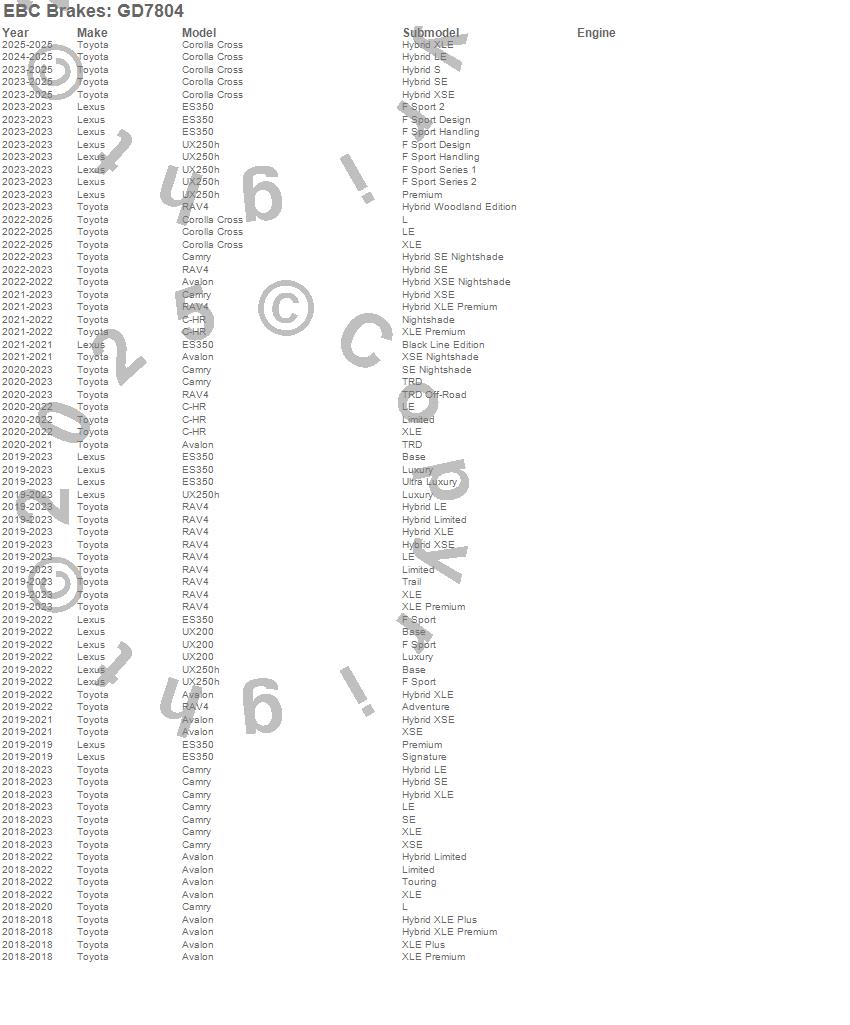 Below is an abbreviated list of applications for the 3GD Series Sport Slotted Rotor Set.