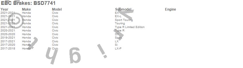 Below is an abbreviated list of applications for the BSD Series Sport Rotor Set w/Ultra Quiet V Slot Configuration.