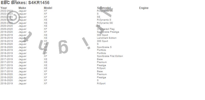 Below is an abbreviated list of applications for the S4 Kits Redstuff and USR Rotor.