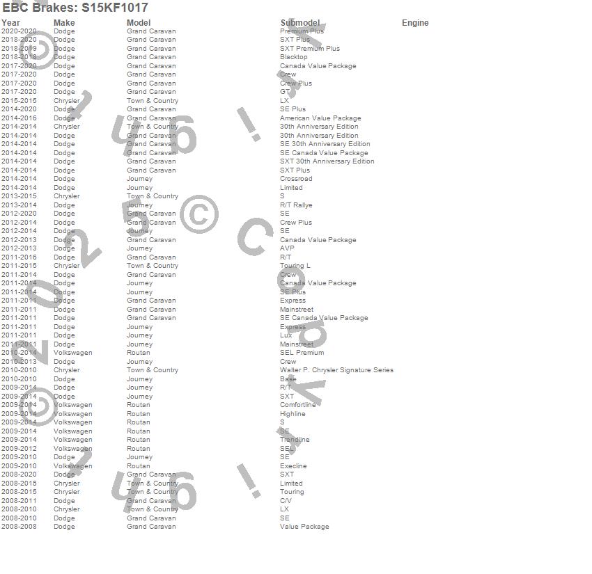 Below is an abbreviated list of applications for the S15 Kit Extra Duty and USR Rotors.