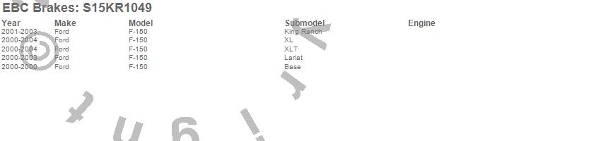 Below is an abbreviated list of applications for the S15 Kit Extra Duty and USR Rotors.
