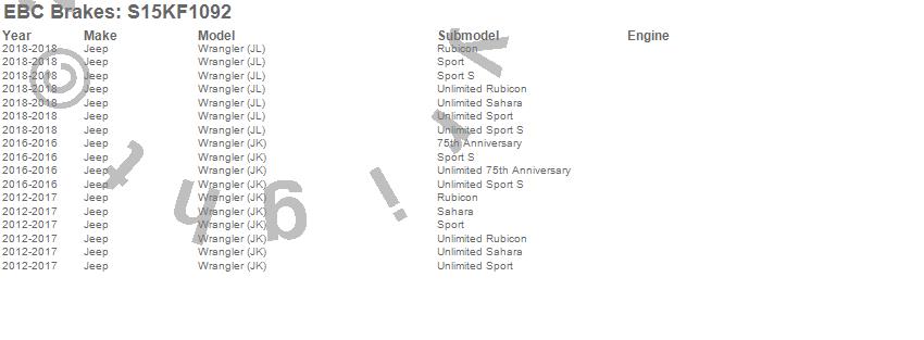 Below is an abbreviated list of applications for the S15 Kit Extra Duty and USR Rotors.