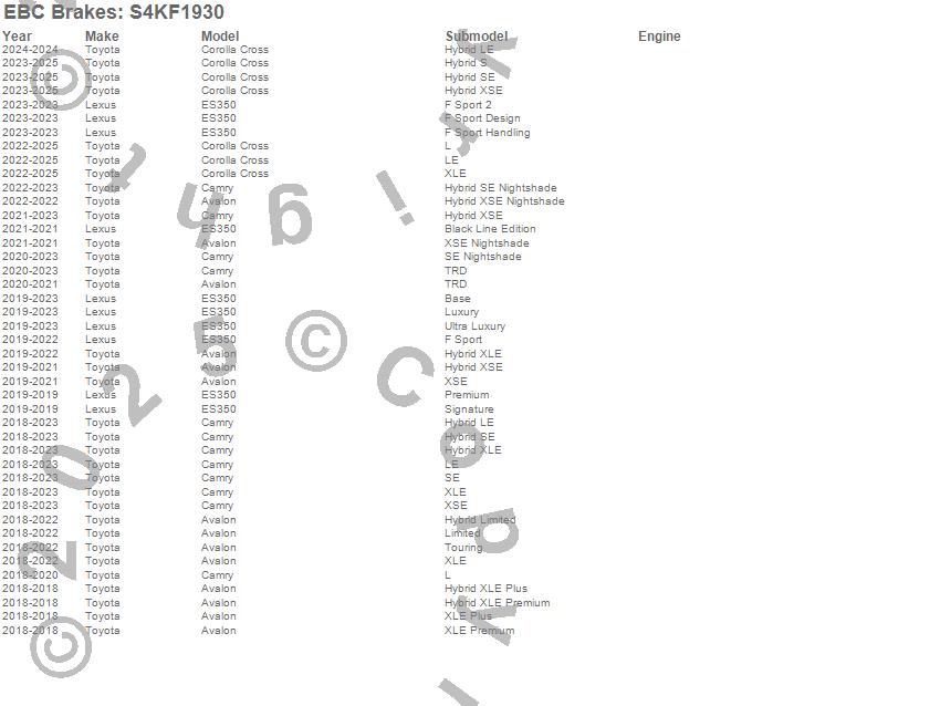Below is an abbreviated list of applications for the S4 Kits Redstuff and USR Rotor.