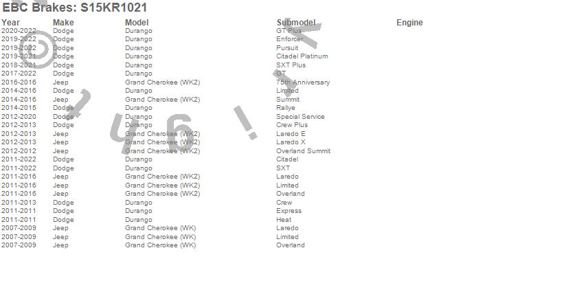 Below is an abbreviated list of applications for the S15 Kit Extra Duty and USR Rotors.