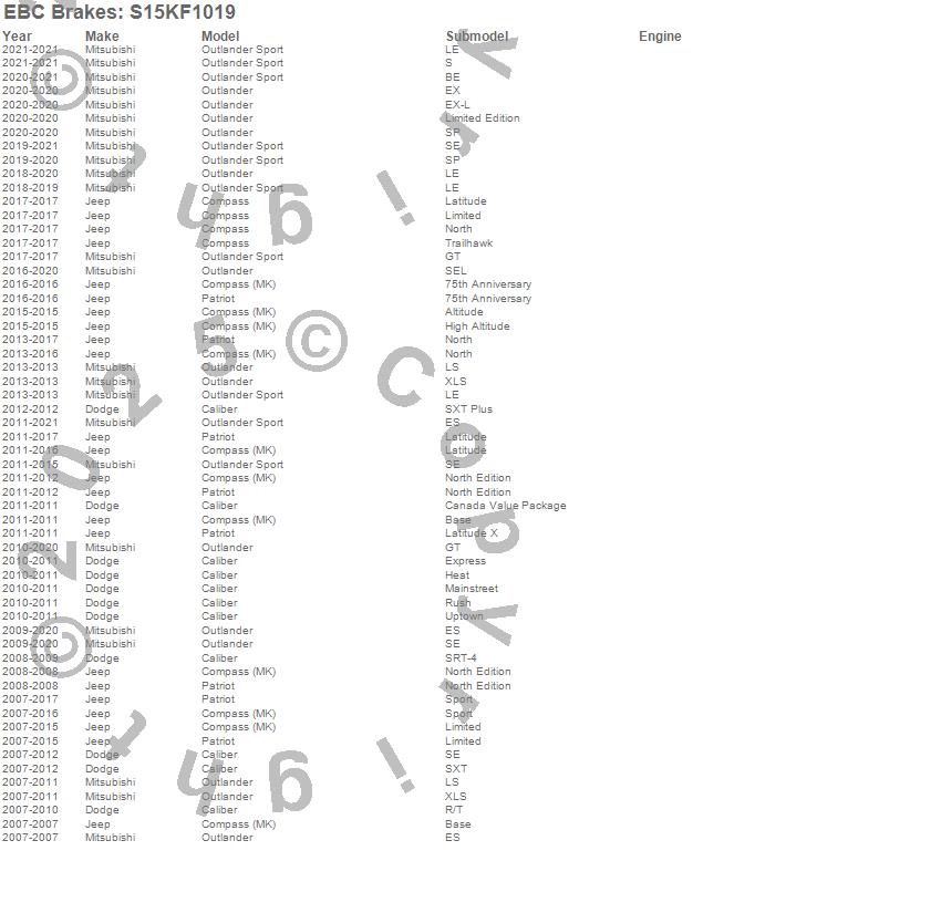 Below is an abbreviated list of applications for the S15 Kit Extra Duty and USR Rotors.