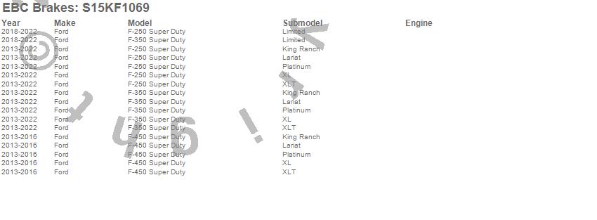 Below is an abbreviated list of applications for the S15 Kit Extra Duty and USR Rotors.