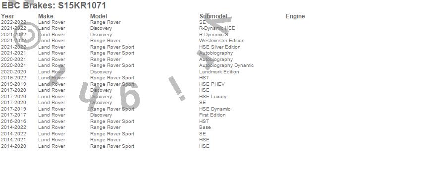 Below is an abbreviated list of applications for the S15 Kit Extra Duty and USR Rotors.