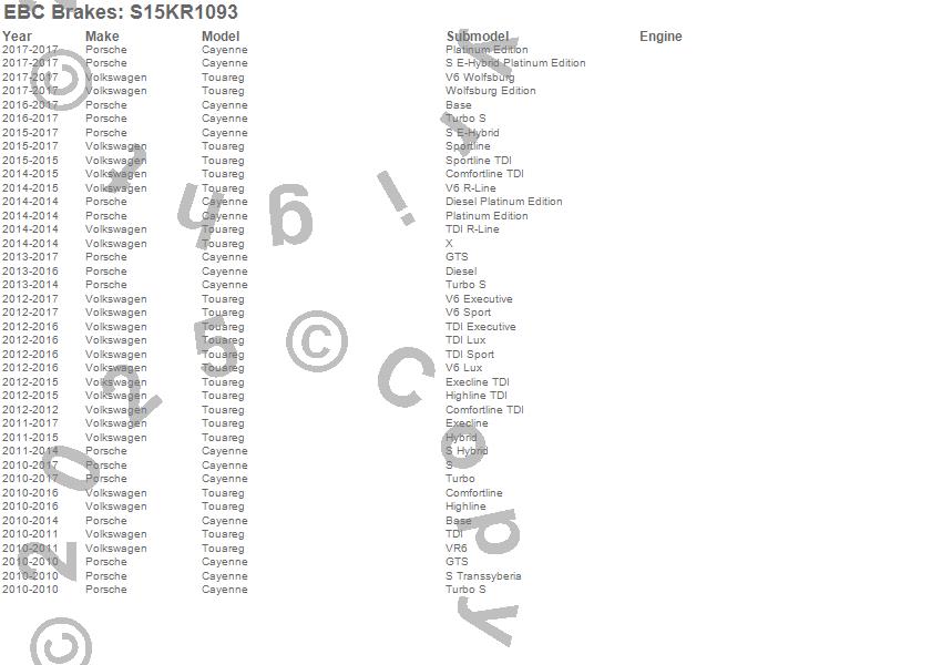 Below is an abbreviated list of applications for the S15 Kit Extra Duty and USR Rotors.