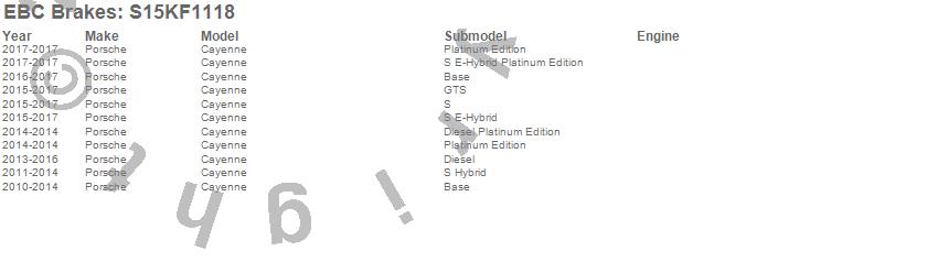 Below is an abbreviated list of applications for the S15 Kit Extra Duty and USR Rotors.