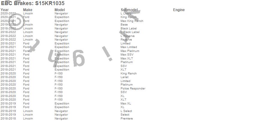 Below is an abbreviated list of applications for the S15 Kit Extra Duty and USR Rotors.