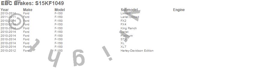 Below is an abbreviated list of applications for the S15 Kit Extra Duty and USR Rotors.