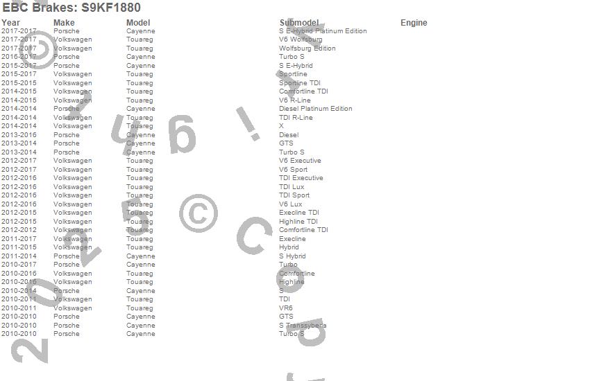 Below is an abbreviated list of applications for the S9 Kits Yellowstuff and USR Rotors.