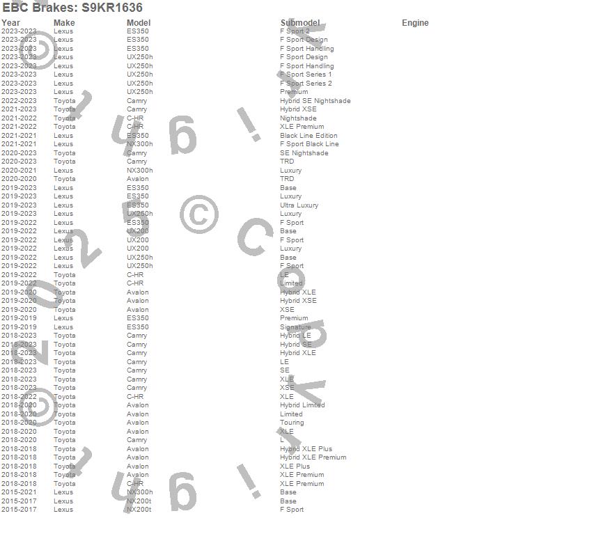 Below is an abbreviated list of applications for the S9 Kits Yellowstuff and USR Rotors.