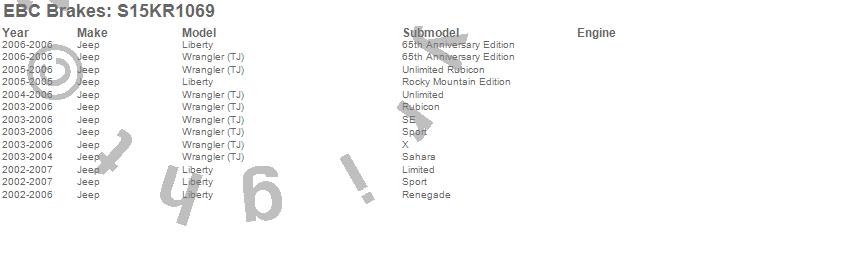 Below is an abbreviated list of applications for the S15 Kit Extra Duty and USR Rotors.
