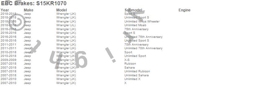 Below is an abbreviated list of applications for the S15 Kit Extra Duty and USR Rotors.