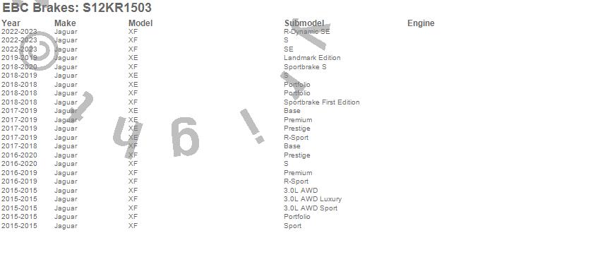 Below is an abbreviated list of applications for the S12 Kits Redstuff and RK Rotors.
