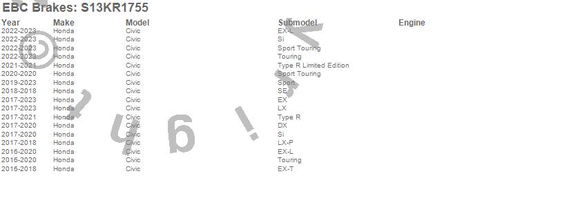 Below is an abbreviated list of applications for the S13 Kits Yellowstuff and RK Rotors.