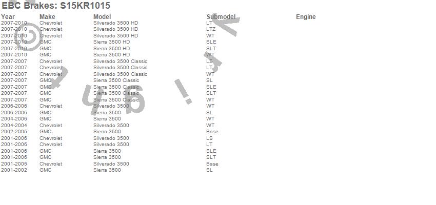 Below is an abbreviated list of applications for the S15 Kit Extra Duty and USR Rotors.