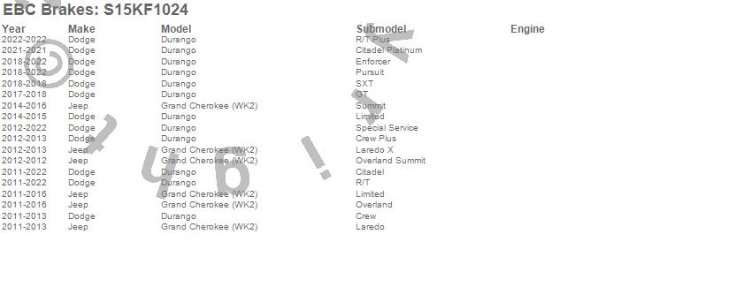 Below is an abbreviated list of applications for the S15 Kit Extra Duty and USR Rotors.