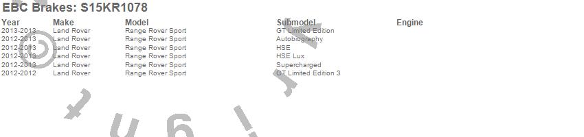 Below is an abbreviated list of applications for the S15 Kit Extra Duty and USR Rotors.