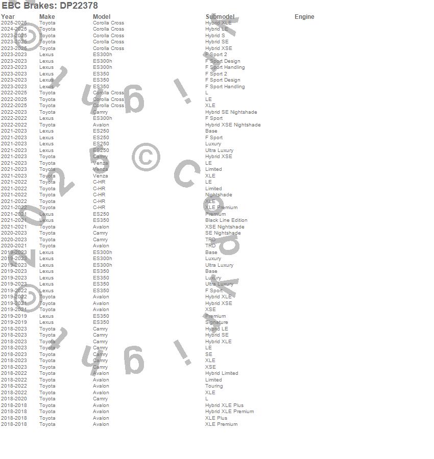 Avalon, C-HR, Camry, Corolla Cross, ES250, ES300h, ES350, Venza, Lexus, Toyota, 2025, 2024, 2023, 2022, 2021, 2020, 2019, 2018