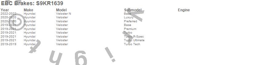 Below is an abbreviated list of applications for the S9 Kits Yellowstuff and USR Rotors.