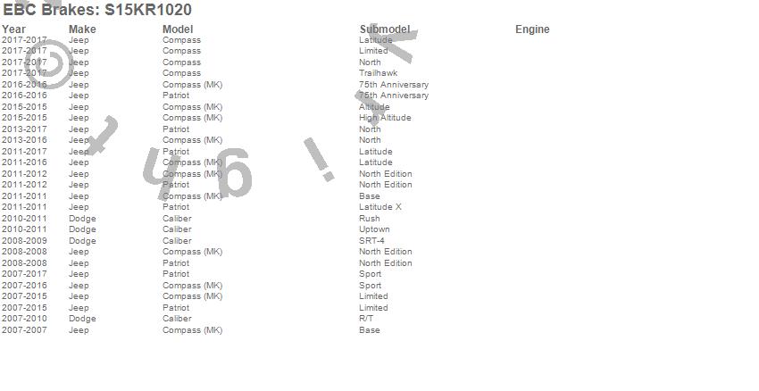 Below is an abbreviated list of applications for the S15 Kit Extra Duty and USR Rotors.