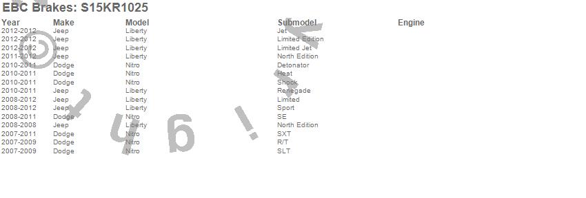 Below is an abbreviated list of applications for the S15 Kit Extra Duty and USR Rotors.