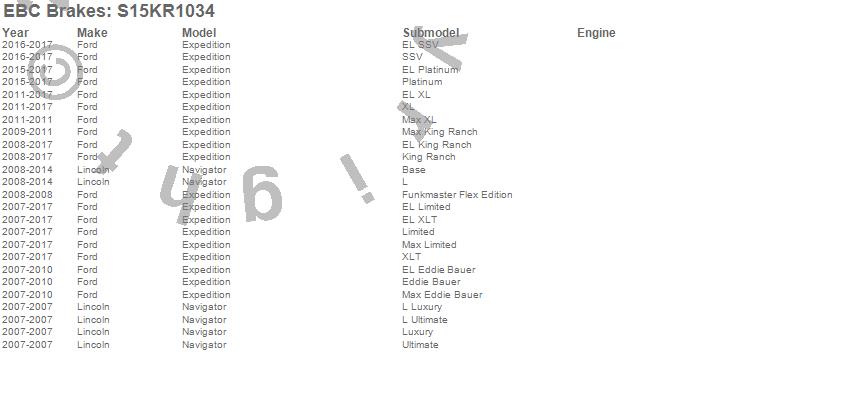 Below is an abbreviated list of applications for the S15 Kit Extra Duty and USR Rotors.