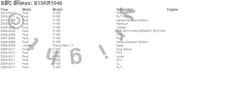 Below is an abbreviated list of applications for the S15 Kit Extra Duty and USR Rotors.