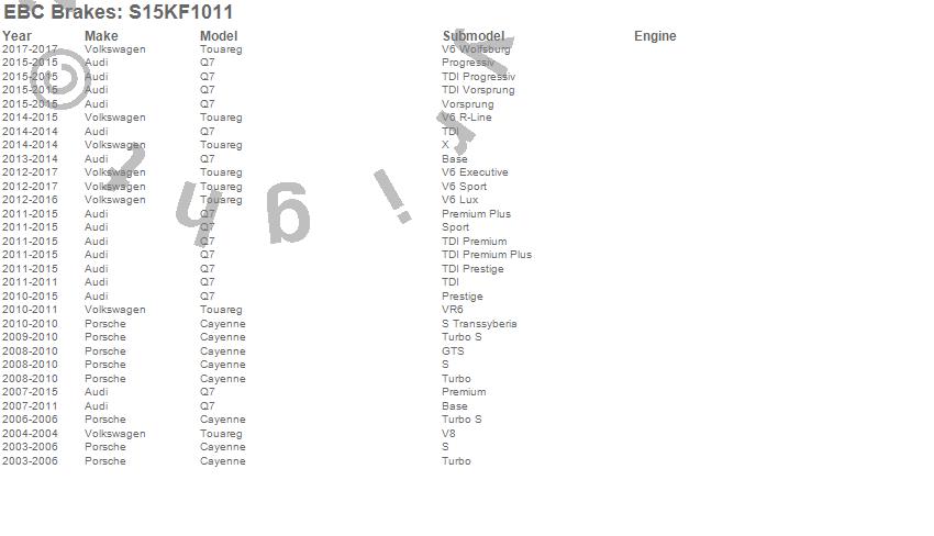 Below is an abbreviated list of applications for the S15 Kit Extra Duty and USR Rotors.