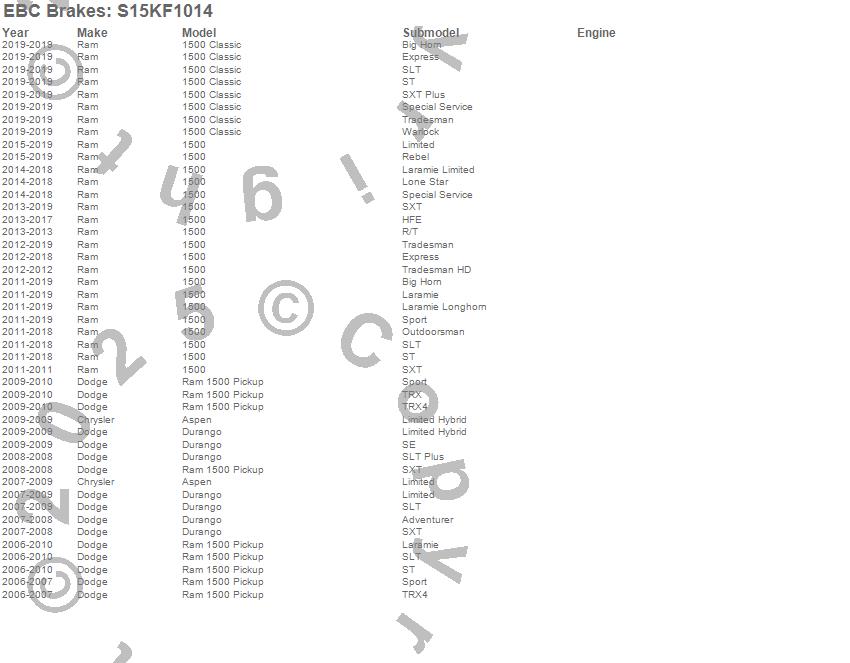 Below is an abbreviated list of applications for the S15 Kit Extra Duty and USR Rotors.