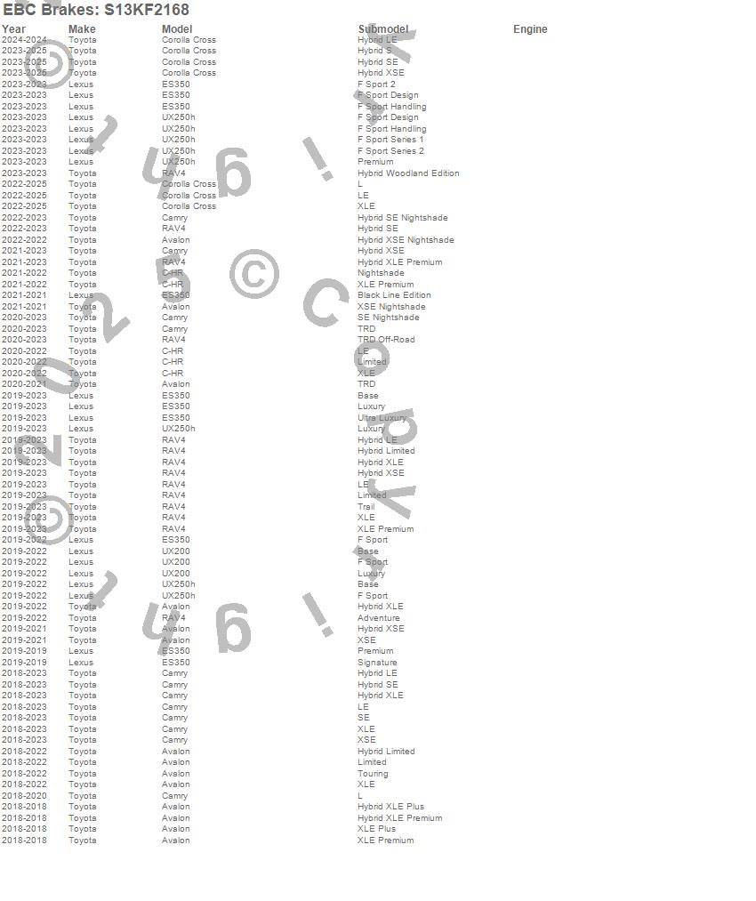 Below is an abbreviated list of applications for the S13 Kits Yellowstuff and RK Rotors.