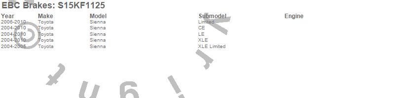 Below is an abbreviated list of applications for the S15 Kit Extra Duty and USR Rotors.