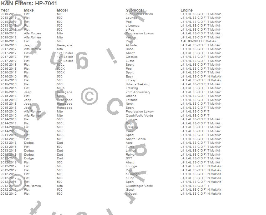 Below is an abbreviated list of applications for the Oil Filter.