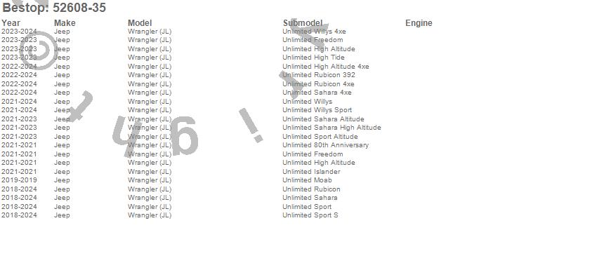 Below is an abbreviated list of applications for the Header Extended Safari Cable Style Bikini Top.
