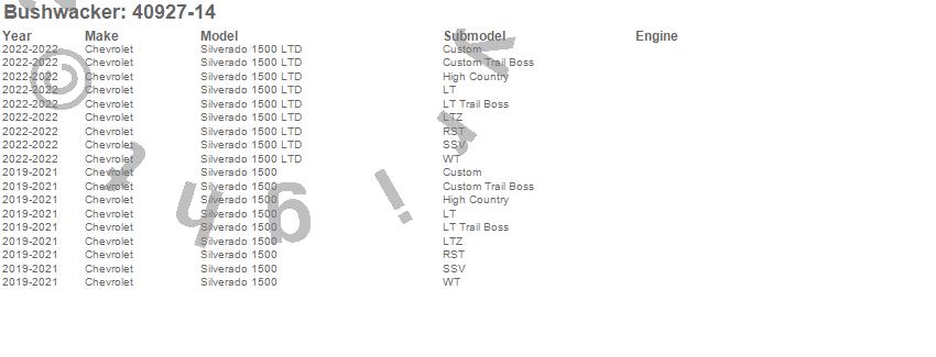 The innovator and creator of the fender flare category, Bushwacker¿ is a U.S. manufacturer of aftermarket and OE automotive accessories. The company specializes in quality products for trucks and Jeeps, utilizing ISO/TS standards with on-site design and tooling resources. Products include fender flares, bedrail caps, tailgate caps, and trail armor. Bushwacker is backed by more than 50 years of innovation and industry-leading customer service.