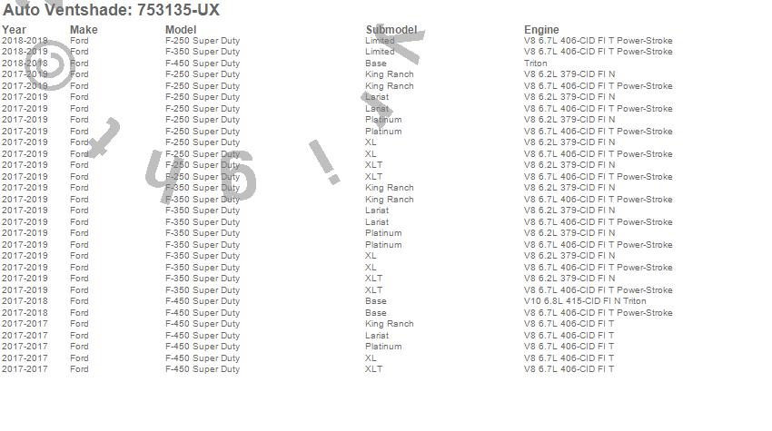 Below is an abbreviated list of applications for the Aeroskin LightShield Hood Protector.
