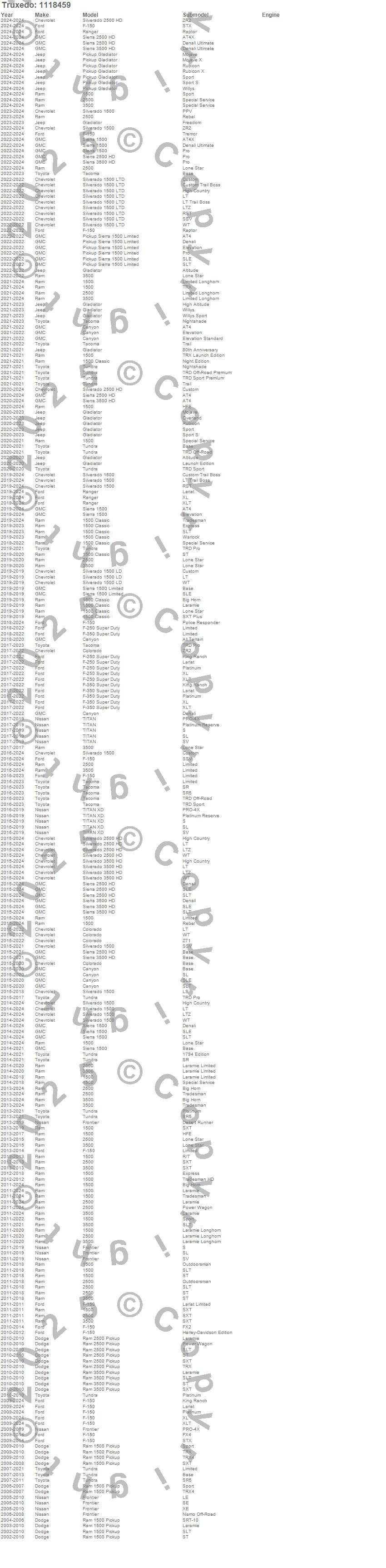 1500, 1500 Classic, 2500, 3500, Canyon, Colorado, F-150, F-250 Super Duty, F-350 Super Duty, Frontier, Gladiator, Pickup Gladiator, Pickup Sierra 1500 Limited, Ram 1500, Ram 2500, Ram 3500, Ranger, Sierra 1500, Sierra 1500 Limited, Sierra 2500 HD